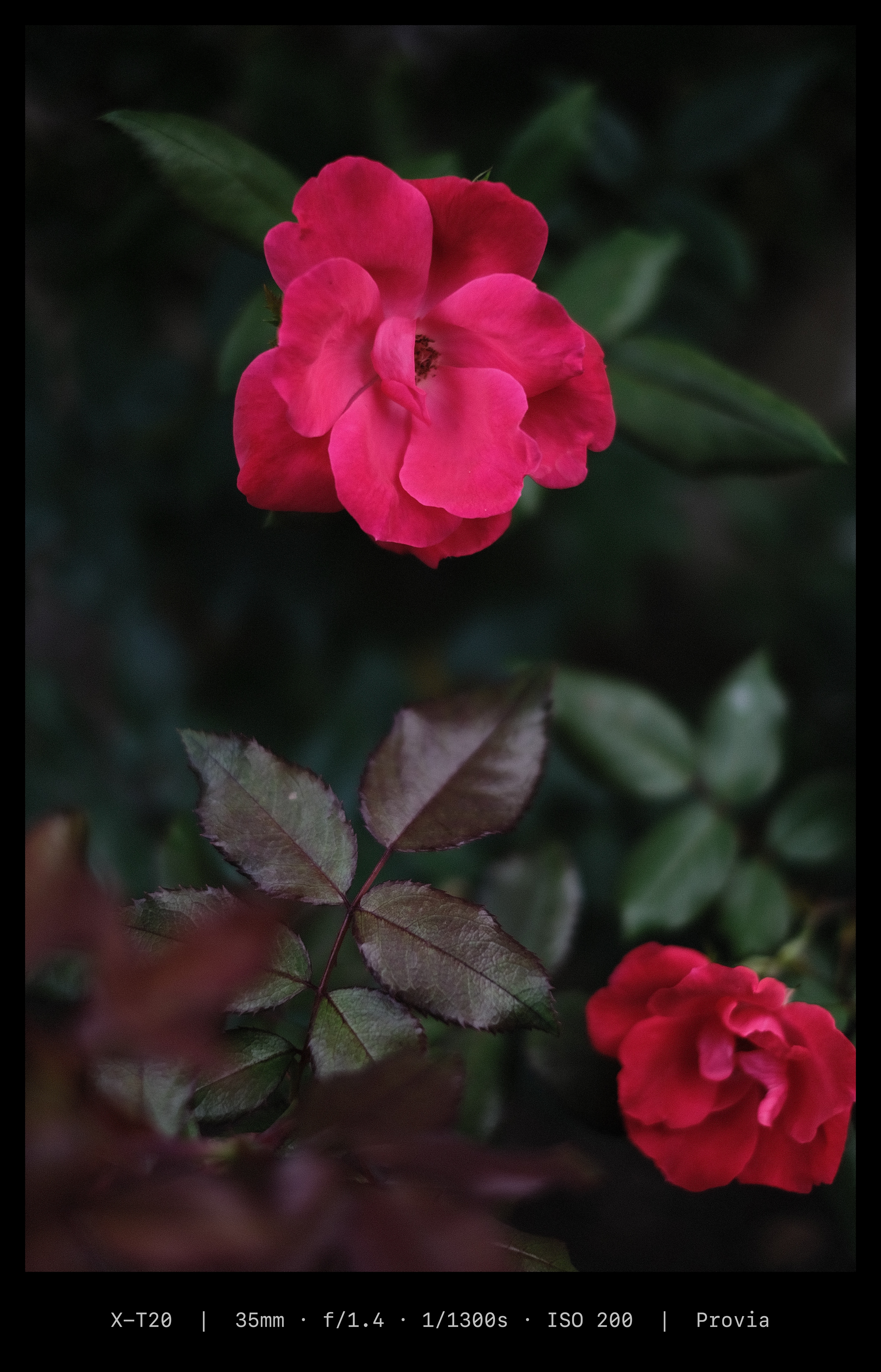 Sample exports — film-inspired borders with EXIF data composited in.